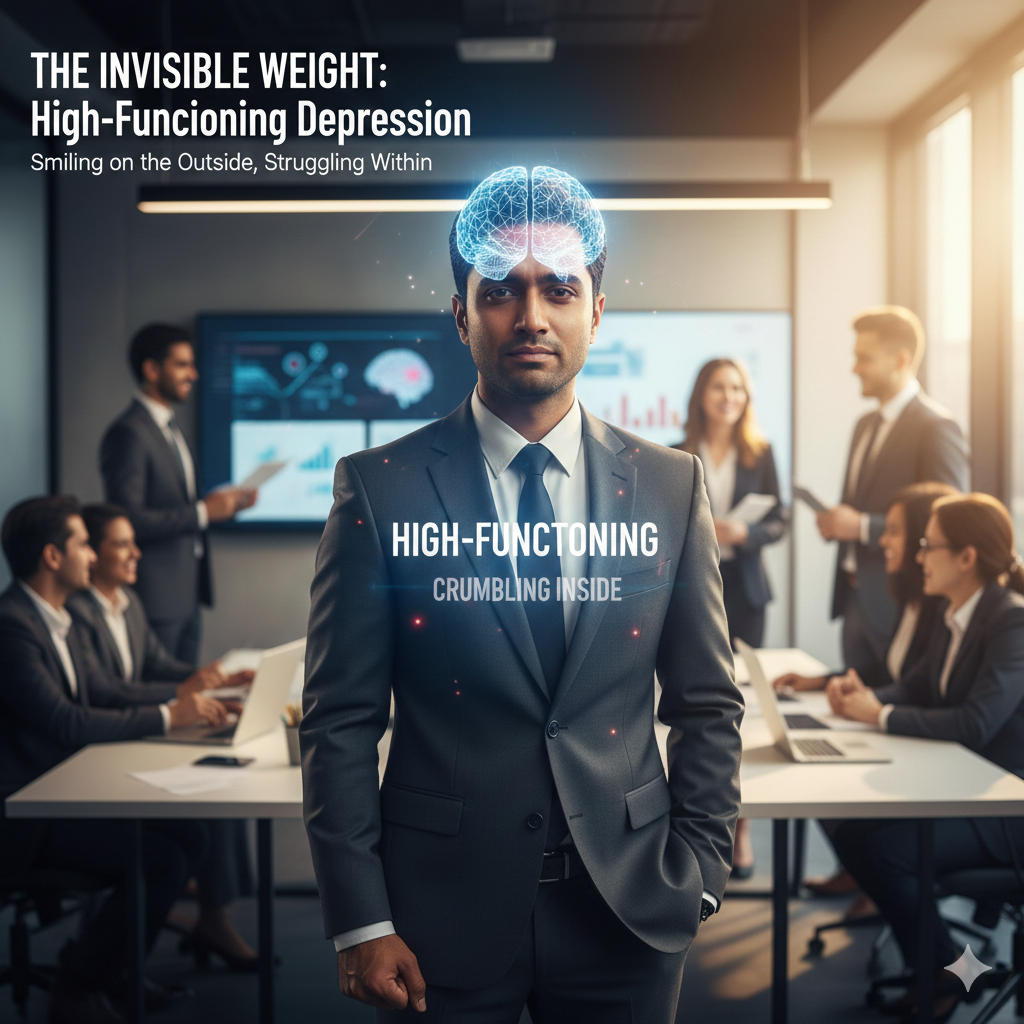 Often, high-functioning depression can be misleading as it is masked by traits like competence, consistency, and good results. The intention of this write-up is to help people realize that, instead of focusing solely on the visible performance, they should consider the invisible stress – for, ultimately, mental health over a long period should not be sacrificed for a continuous productivity.